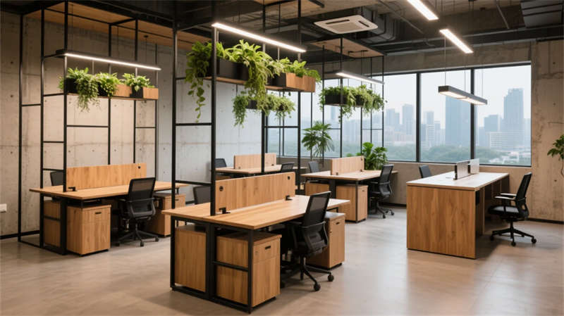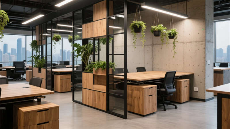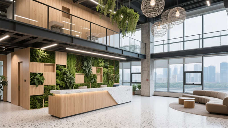 本项目以“自然渗透”与“灵活共生”为核心,将轻工业风的理性框架与生态绿意巧妙融合。空间打破传统办公割裂感,通过绿植墙体、透光天井与流动线条,在合肥城市肌理中营造出呼吸感十足的职场绿洲。