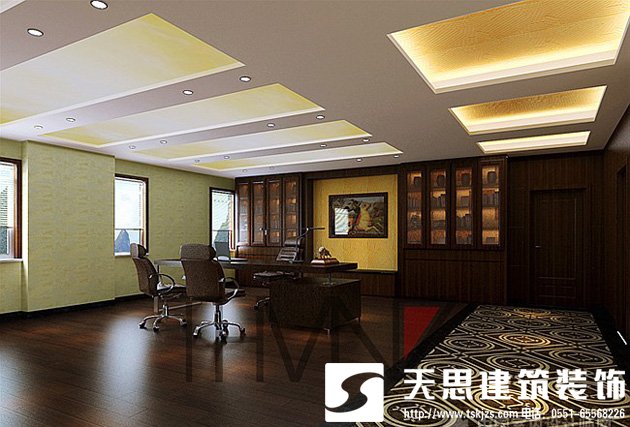 有的老板为了节约地方没设自己办公室,有的老板为了显气派,把自己的办公室弄的特别大,这两种情况都是不合理的。总经理办公室就像龙头,过大或过小都会造成公司整体运转不灵活, 面对各种竞争不能随机应变,从而阻碍发展。那么多大的面积比较合适呢,一般总经理的办公室占整体面积的四分之一左右为宜,这里说的不包括工厂。