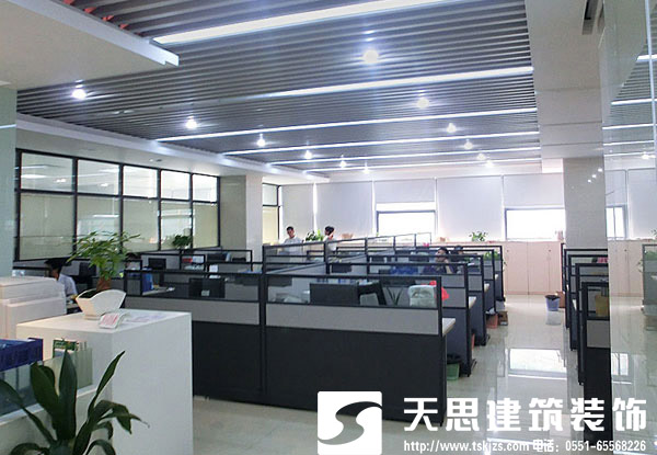 从专业角度来讲玻璃隔断墙因称为透光模块隔断墙,玻璃隔断中又分单面边置、单面中置、双面、双面带横档、双面内置百叶帘等多种方式。在玻璃隔断墙的安装中,安徽天思建筑办公室装修设计公司考虑到使用功能的不同,做如下设计建议: