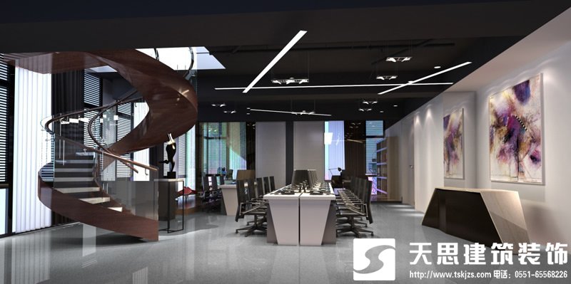 员工办公空间设计应根据工作需要和部门人数并参考建筑结构设定面积和位置。首先应平衡各室之间的大关系,然后再作室内安排。布置时应注意不同工作的使用要求,如对外接洽的,要面向门口;做文案和设计的,则应有相对安静的空间。还要注意人和家具、设备、空间、通道的关系,确保使用方便、合理、安全。办公台多为平行垂直方向摆设。大的办公空间,做整齐的斜向排列也颇有新意,但要注意使用方便和与整体风格协调。