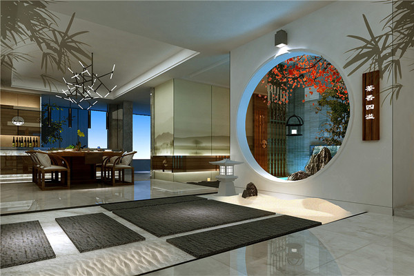 中华之大,讲究以和为贵,对称在设计中被认为是一种“和”,展现一种和谐之美。因此不论是会所装修还是其他装修都讲究对称设计,这种设计理念最早来源于古代道家的太极图,讲究“阴阳平衡”的对称,并在装饰时将“金木水火土”等五行元素融入其中。