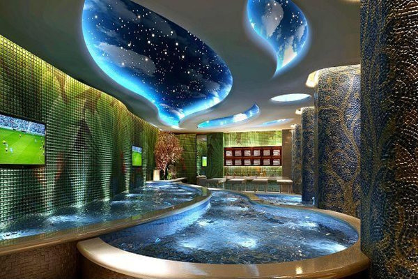 洗浴中心主要和水打交道,因此装修最主要的是要做好防水功能。会所顾客与地面接触时间最长,而与墙面一般不直接接触,所以选择地面材料要关注品质,地面建议走好防水。地砖的选择注重质量,而墙砖更多讲究美观,如果想要装修省钱,可以在墙砖上下功夫。