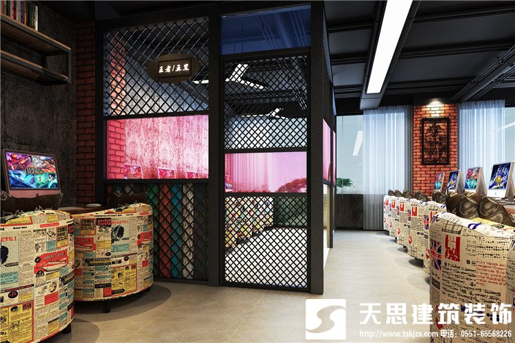 网咖现代风格装修以其简洁大气的“气质”获得了大众的青睐,不少网咖还在现代的装修风格的基础上融入了自身的一些特色,使网咖更加时尚高端。该网咖以避风港为主题,不仅简约大气,而且时尚自由,这种风格重视个性与内涵,同时将传统的典雅和现代的新颖相融合,格局独特。