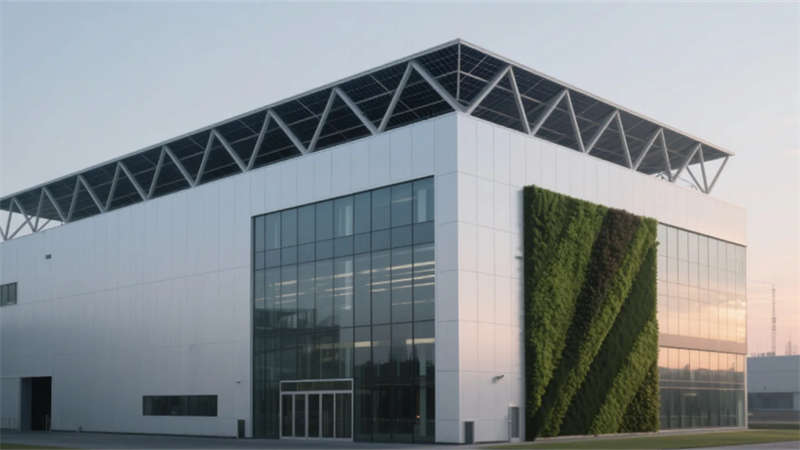 这个洁净车间厂房,以未来工业美学为语言,诠释新能源智造的全新范式。通透的玻璃幕墙与菱形光伏屋顶交织,将自然光引入车间,与冷调LED光带共构科技与生态的平衡。核心生产区如同精密运转的“硅基心脏”,层流送风系统无声守护着无尘环境,自动化设备在蓝色光晕中有序协作,AGV穿梭的轨迹编织出无声的效率诗篇。