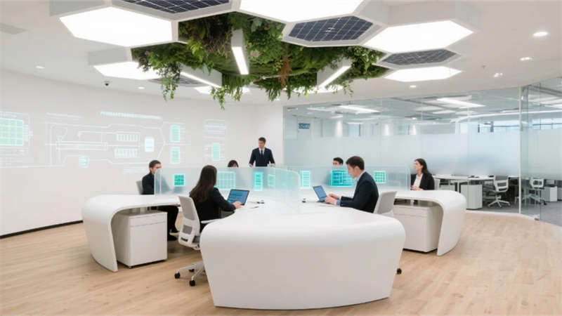 开放式办公区打破传统壁垒,蜂窝状工位与悬浮绿植装置诠释灵动协作,透明屏幕上的数据流与玻璃隔断投影的生产流程图虚实相映。总裁空间则如悬浮的智慧中枢,弧形落地窗将车间全景化作动态壁画,金属与大理石的碰撞间,流淌着决策与创新的电流。智能仓储区立体货架的金属骨骼间,无人机如蜂鸟般掠过货品,天光与电子标签的光斑在环氧地面上跳动着数字时代的韵律。