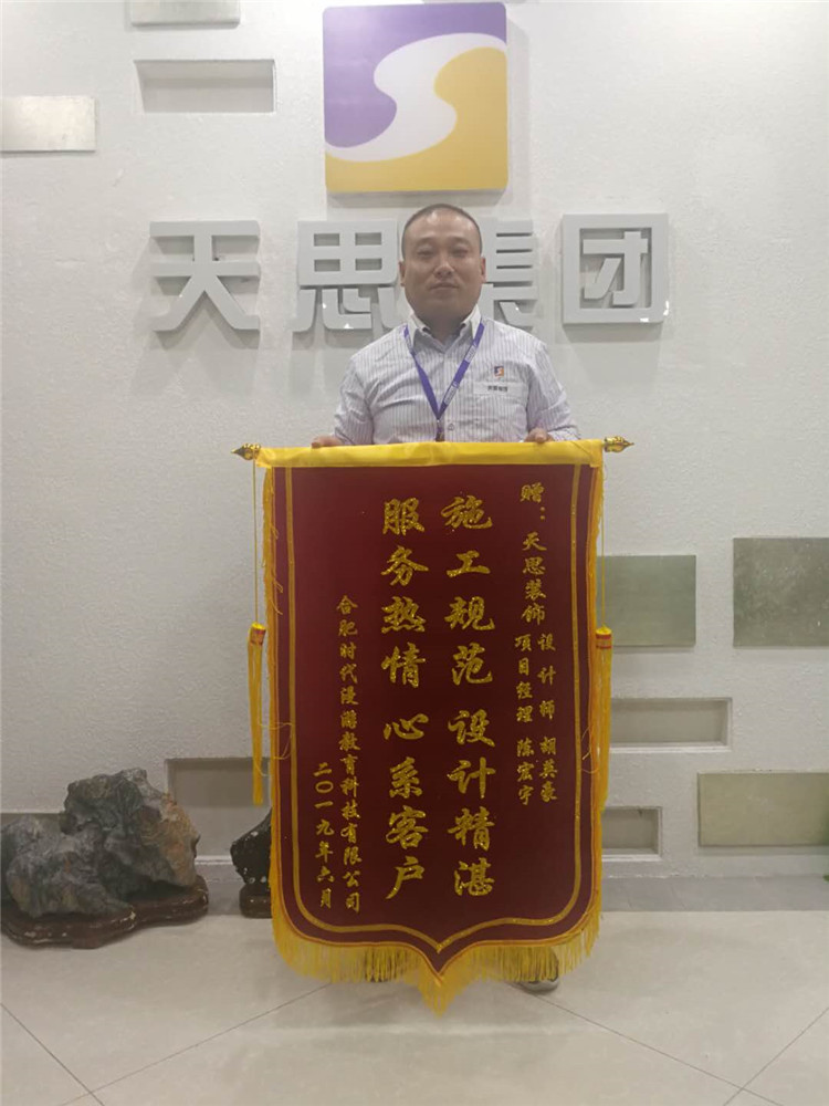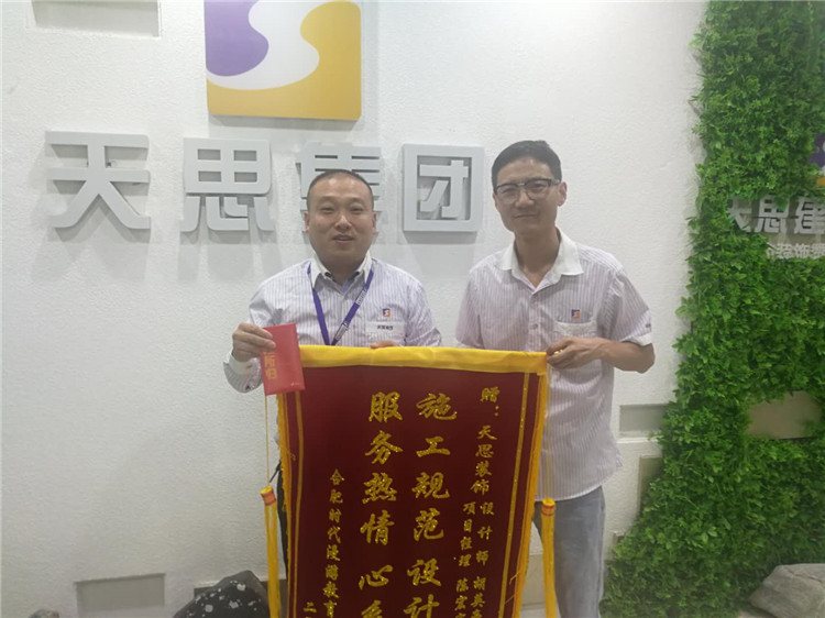 在送锦旗时,业主还赞道:"天思装饰的陈工工作认真、负责、敬业,和他打交道我很放心", 开工装修时候正是酷热的夏天,负责装修的陈工每天都在工地,每个环节都主动和他沟通,更重要的是在很多方面提出合理的建议;有问题就及时整改,从材料进场的严格把关,到施工过程质量的严格控制.这份诚恳敬业的态度让他非常感动.