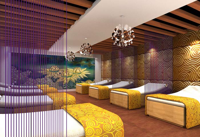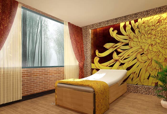 设计师在养生会所装修设计的时候,根据业主的要求,打造一个心灵舒缓和释放灵魂的自然氛围养生会所。运用了意境休闲以及绝对放松的自然氛围,再加入富有时代气息现代简洁的生活要求所辉映的相融合。步移景异,曲径通幽的格局布置,使空间更为灵动,从而达到使人充分融入放松环境,忘却尘世的纷扰。自然氛围养生会所装修设计的色彩运用上,基本的遵循传统上的色彩氛围上,以褐色,金色,红色为主色调,让客人在享受服务的同时有更多层次的感受。